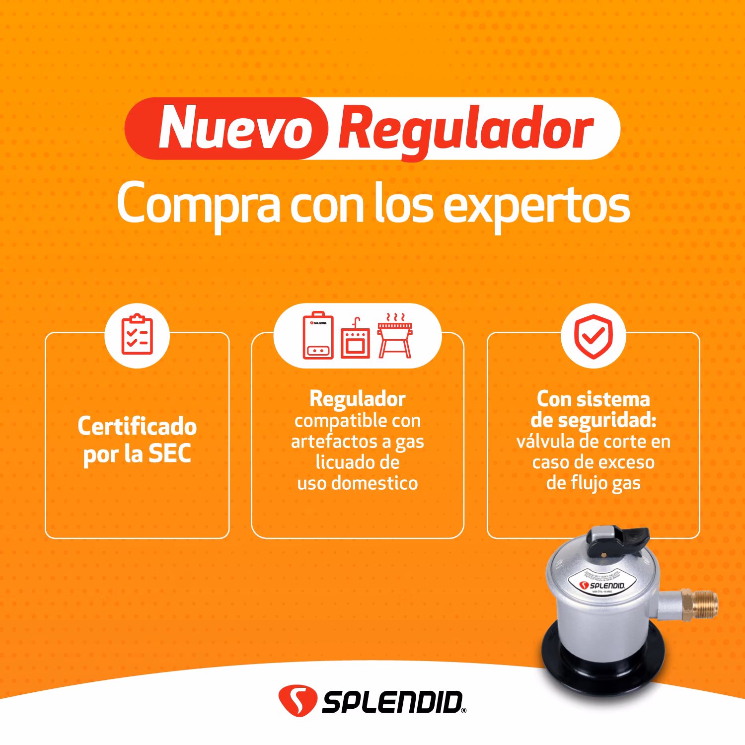 Regulador de gas licuado para cilindros de 5,11, y 15 kg Splendid